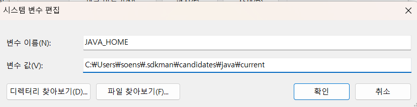 아래 명령어 입력시 sdkman이 알아서 사용할 JDK를 연결해줌.
