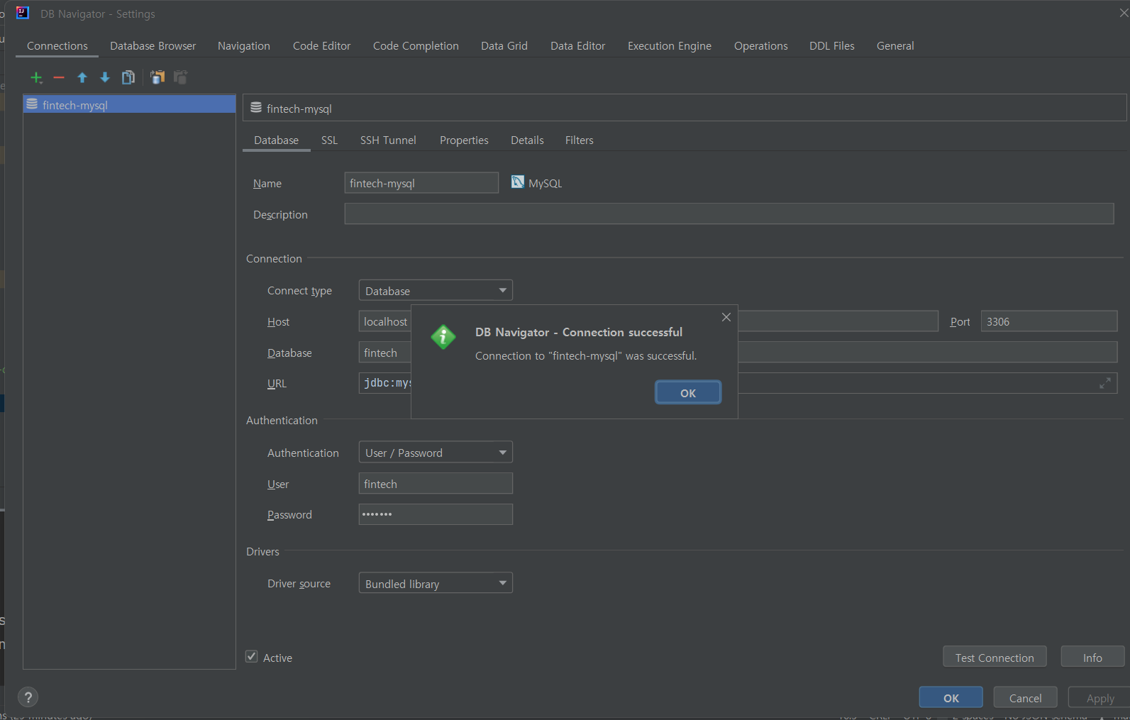docker에 fintech-mysql 이미지를 컨테이너로 띄우고 실행시켰다.