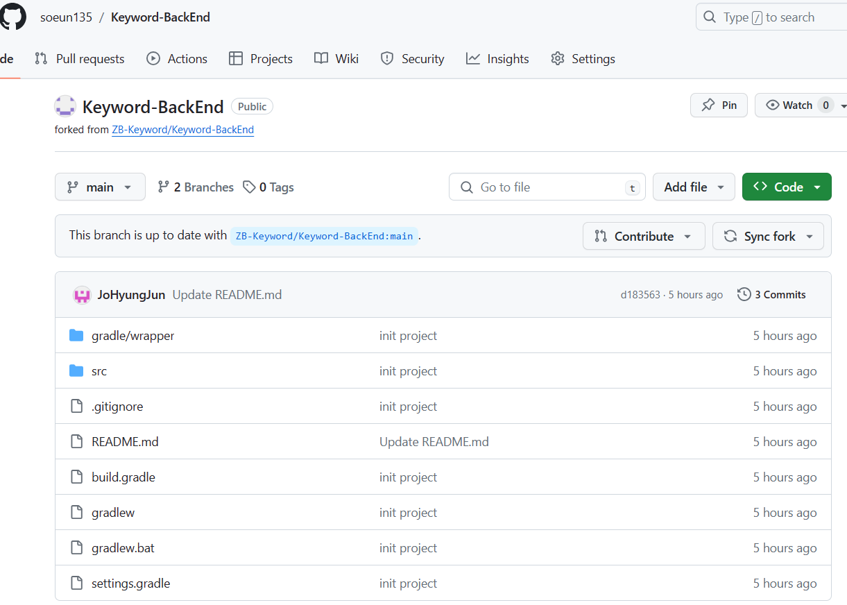 내가 했던 데로 Keyword로 하면 실제 프로젝트 명과 settings.gradle의 rootProject.name 이 달라서 오류남